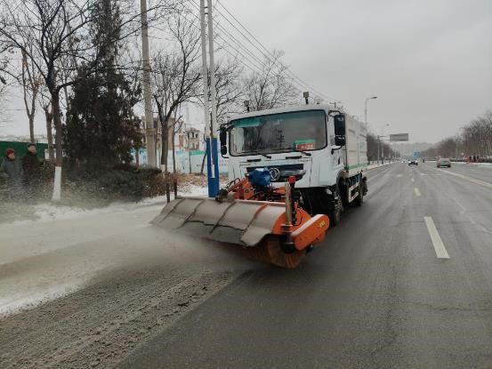 公司迅速集結(jié)23名工作人員,調(diào)配除雪車、融雪劑灑布車各1臺(tái),前往渤海十三路(黃河一路至黃河二路段)開(kāi)展開(kāi)除雪作業(yè)。
