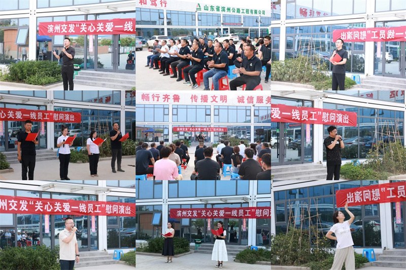 7月10日,公司工會組織各權(quán)屬單位文藝骨干到慶章高速施工二標(biāo)段項(xiàng)目經(jīng)理部舉辦“關(guān)心關(guān)愛一線員工”慰問演出活動,為奮戰(zhàn)在高溫下的一線員工送去關(guān)懷與問候。公司黨委委員、職工董事、工會主席于光,公司工會副主席、工程公司黨總支委員、工會主席楊英超參加活動。