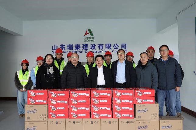 2月11日,公司黨委副書記、總經(jīng)理、董事劉漢興一行到瑞泰公司S236辛濱線濱城繞城段改建工程施工一標段項目經(jīng)理部慰問一線員工。公司黨委委員、工會主席、職工董事于光,黨委委員、副總經(jīng)理、安全總監(jiān)張繼軍陪同。